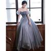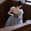 The Alyssa Ball Gown features a captivating shade of misty blue-grey, adorned with delicate polka dots throughout. The corset-style bodice is intricately designed with boning for structure and support, ensuring you feel both comfortable and secure all night long. The bodice seamlessly flows into a voluminous skirt that adds a touch of drama and elegance to your look.
