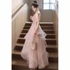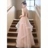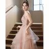 Step into your next special occasion feeling like a princess in this stunning blush pink evening gown, perfect for weddings, proms, or any elegant event where you want to shine. This exquisite gown is designed to capture attention and make you feel confident, beautiful, and unforgettable. Crafted from high-quality tulle, this dress features a delicate floral lace bodice adorned with shimmering sequins that add a touch of glamour and sophistication. The soft blush pink shade flatters all skin tones, enhancing your natural beauty with a gentle, feminine glow.
