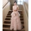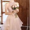 The dress’s high neckline and sheer shoulders are adorned with subtle beading, creating an ethereal and whimsical look that’s both graceful and modern. The flowing layered skirt cascades down in a dreamy, fairy-tale fashion, creating a silhouette that moves beautifully with every step you take. Whether you’re walking down the aisle, attending a prom, or celebrating a milestone, this gown ensures you’ll do it in style.
