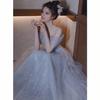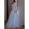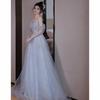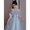 Step into a world of enchantment with this exquisite gown, perfect for life's most memorable occasions. Whether you're attending a glamorous evening gala, a sophisticated wedding, or a formal event, this dress ensures you stand out with elegance and grace. The delicate light blue hue sparkles under the lights, making you the center of attention at any gathering.