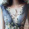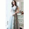 Crafted from high-quality materials, this dress is designed with both comfort and style in mind. The sleeveless design allows for ease of movement, while the soft inner lining ensures you stay comfortable throughout the night. The A-line silhouette is universally flattering, creating a graceful and feminine shape that complements all body types. The golden embroidery adds a rich contrast against the blue, enhancing the luxurious feel of the garment and ensuring you stand out in any crowd.