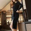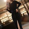 Here is a black lace up pack hip slit midi dress for elegant ladies and feminine women. This dress is from our collection midi dresses.