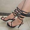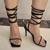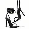Black Stiletto High Heeled Sandals With Large Ankle Strap