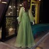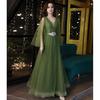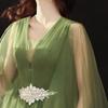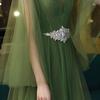 Step into elegance with our enchanting evening gown, perfect for making a statement at any formal occasion, from weddings to gala events. This stunning dress is designed to turn heads with its rich, deep green hue that exudes sophistication and grace. The flowing chiffon fabric creates a dreamy, ethereal effect, while the delicate pleats on the bodice add a touch of texture and refinement.