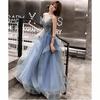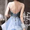 The bodice is adorned with intricate, shimmering embellishments that add a touch of glamour and luxury. The fitted waistline accentuates your curves, flowing into a voluminous skirt that creates a dramatic and ethereal silhouette. Made from high-quality, lightweight fabric, this gown ensures you stay comfortable and at ease all night long.