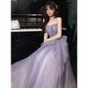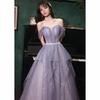 Elevate your evening look with this stunning lavender evening gown, designed to make you the center of attention at any special occasion. Whether it's a black-tie gala, prom night, or a wedding reception, this gown is the perfect choice for a memorable evening. The sophisticated design, featuring layers of ethereal tulle, creates a graceful and elegant silhouette that will leave everyone in awe.
