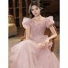 Step into elegance and embrace your inner princess with this breathtaking blush pink gown, perfect for your next special occasion. Whether you’re attending a romantic evening gala, a sophisticated wedding, or a dreamy prom night, this dress is designed to make you feel like the star of the evening. The gown features a heart-shaped bodice adorned with delicate sequins, creating a subtle sparkle that will capture the light and everyone’s attention as you move.
