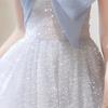 Crafted with meticulous attention to detail, this gown features a stunning off-shoulder design adorned with a dramatic bow. The shimmering fabric sparkles with every movement, creating a magical effect that is sure to captivate. The bodice is designed to flatter your figure, offering both comfort and style, while the full skirt adds a touch of fairytale charm.