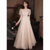 Step into elegance with our breathtakingly beautiful gown, perfect for any formal occasion, including weddings, galas, or evening parties. This enchanting dress is designed to make you feel like a princess with its delicate and sophisticated style. The dress features a soft champagne hue that exudes grace and luxury, ensuring you'll be the center of attention.