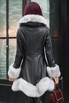 Here is a long winter leather jacket slim fit black with a silver fox fur for ladies and feminine women.