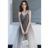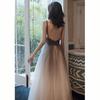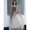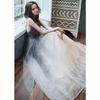 Step into elegance with this stunning ombré gown, perfect for evening events, formal occasions, or any special celebration where you want to make a lasting impression. This gown is designed for the modern woman who values both style and comfort. The luxurious, flowing fabric gracefully cascades from a deep charcoal gray at the bodice to a soft, ethereal ivory at the hem, creating a mesmerizing gradient effect that is sure to turn heads. The plunging V-neckline and delicate spaghetti straps add a touch of allure, while the flowing skirt offers a sense of movement and freedom that enhances your natural grace.
