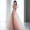 Step into a world of timeless elegance with this enchanting blush pink gown, designed to make you feel like a modern-day princess. Whether you're attending a wedding, prom, or a formal evening event, this gown effortlessly exudes romance and sophistication. The soft blush hue adds a touch of femininity, while the intricate lace bodice provides an exquisite contrast to the flowing tulle skirt, creating a silhouette that is both graceful and flattering.